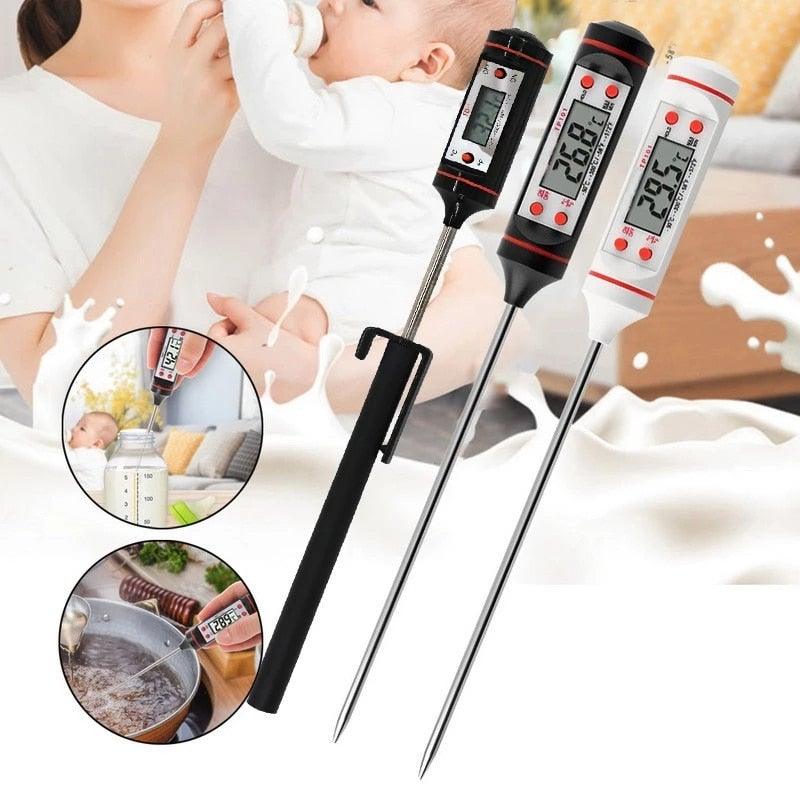 Kitchen Probe Thermometer 304 Stainless Steel Measuring Food Barbecue Milk Soup Oil Thermometer Digital Water Thermometer for Liquid Candle Instant Read With Waterproof For Food Meat Milk Long Probe