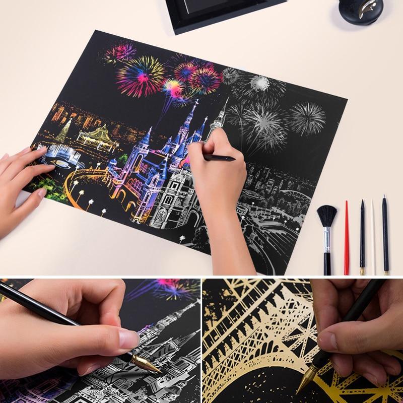 Kids  Scratch Paintings Magic Seascape Art Drawings Paper Table Kids Educational Toys Child Birthday Gifts For Boys or  Girls
