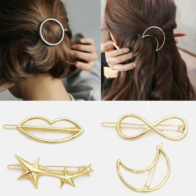Elegant Gold/Silver Plated Metal Circle Charming Hair Clips For Women Hair Barrettes Simple Fashionable Hair Clips For Girls Hair Styling Accessories