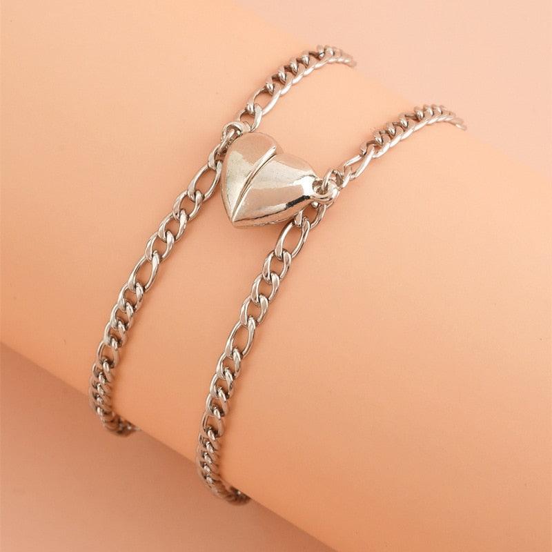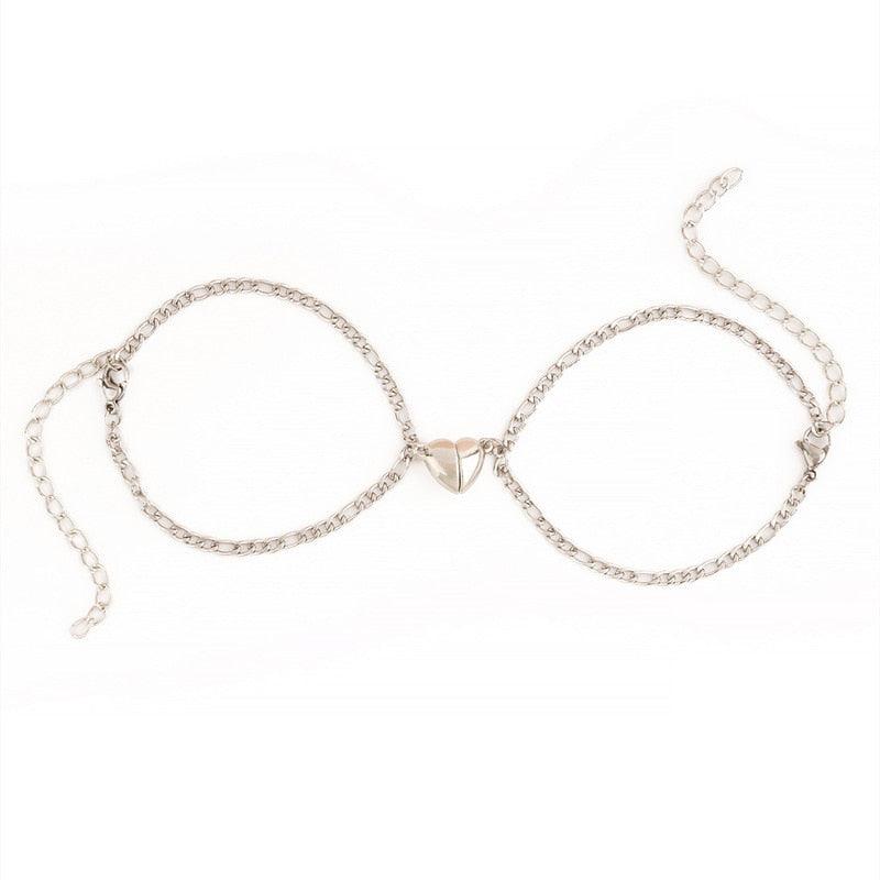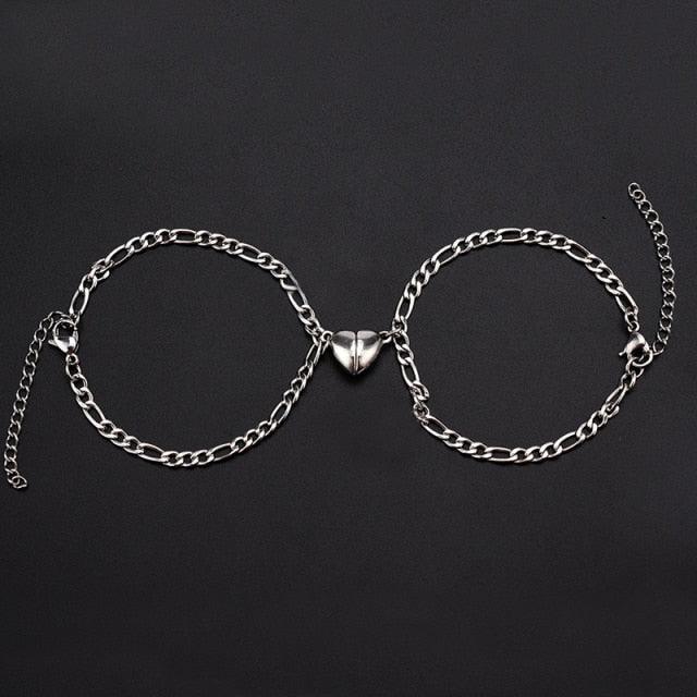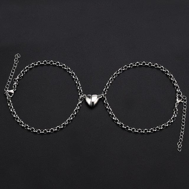 2pcs /pair Magnet Attraction Stainless Steel Pendant Couple Bracelets Jewelry Titanium Steel Chain Bracelet Couples Bracelets For Women Men Stainless Steel Heart Magnet Bracelets For Couples