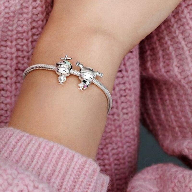 925 Sterling Silver Little Girl & Boy Charm Bead Fit Original Bracelet Bangle For Women Jewelry Gift Sterling Silver Child Charm Birthday for Charm Bracelet
