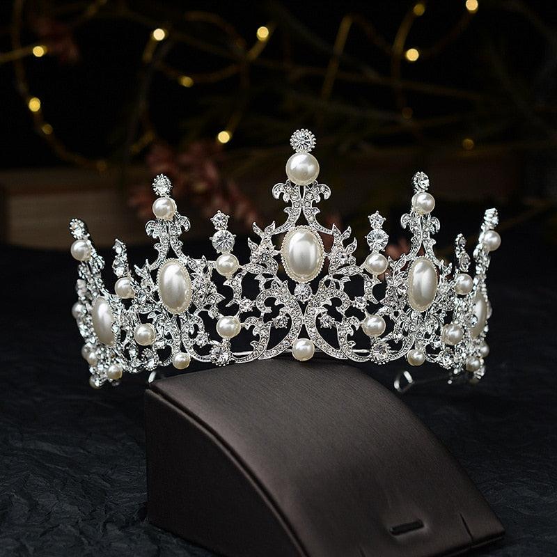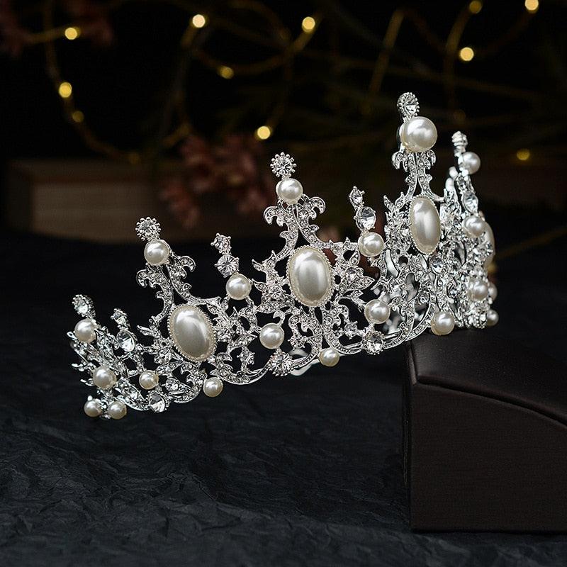 Luxury Silver Plated Crystal Pearls Bridal Tiaras Crown Rhinestone Pageant Headbands Wedding Hair Accessories Bride Headdress Elegant Pearl Crown Princess Birthday Wedding Headdress Hair Accessories