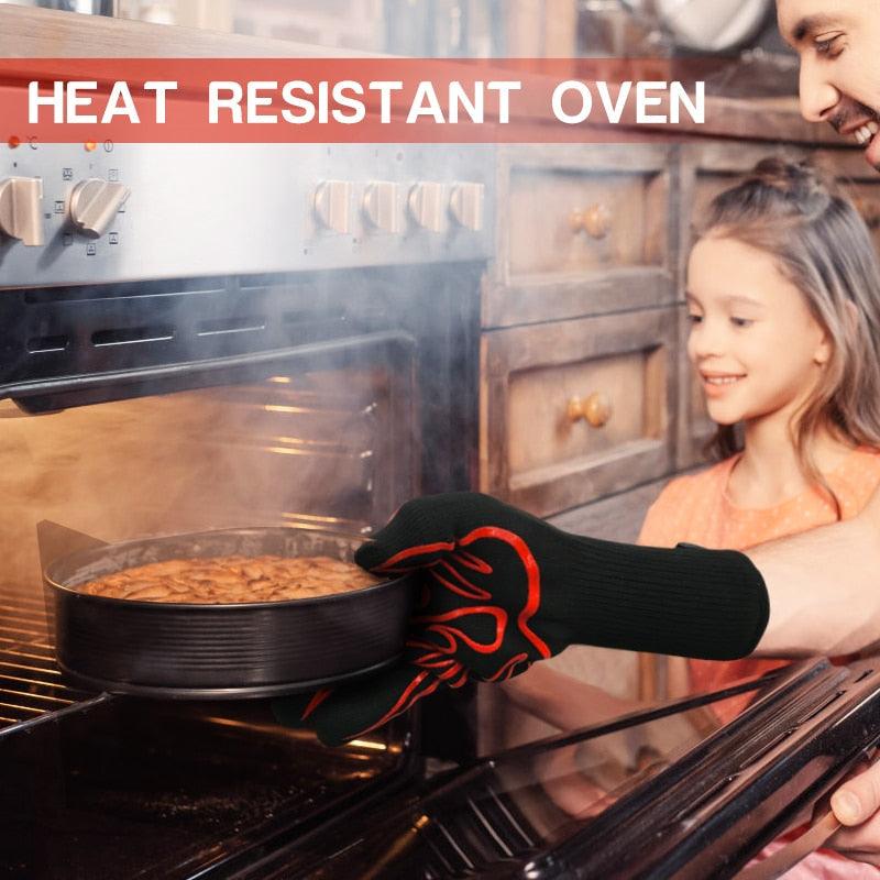 BBQ Oven Gloves High Temperature Resistance Barbecue Cooking Baking Heat Insulation 14 Inch Bracers Microwave Gloves Fireproof Kitchen Gloves for Outdoor Cooking BBQ Barbecue Accessories