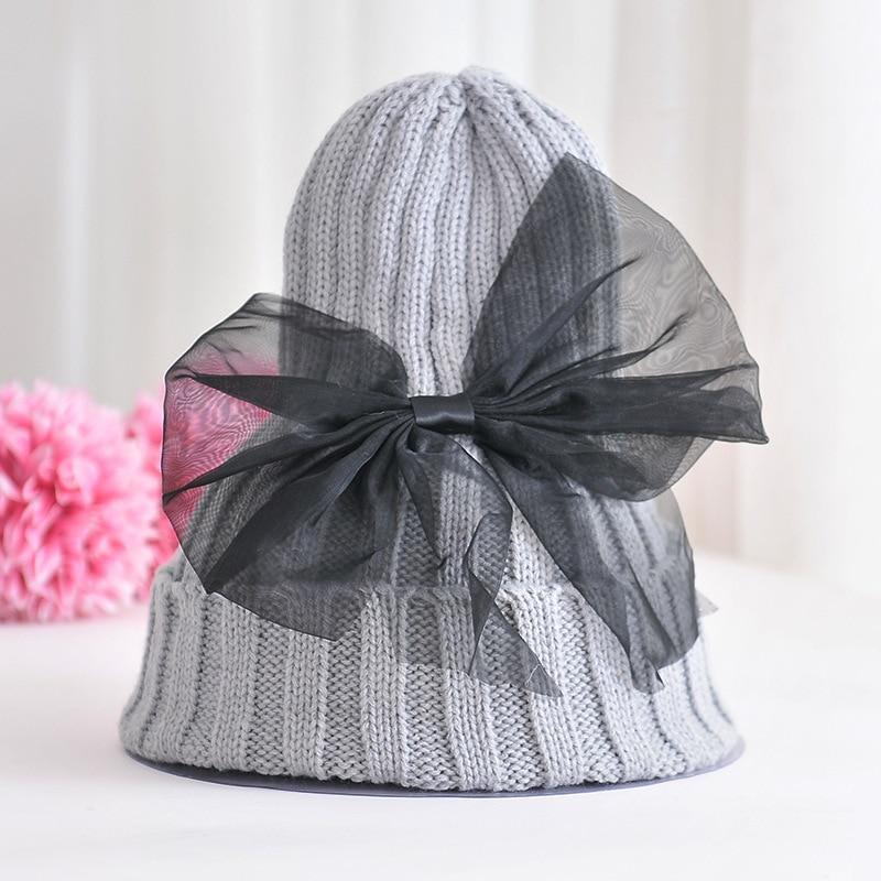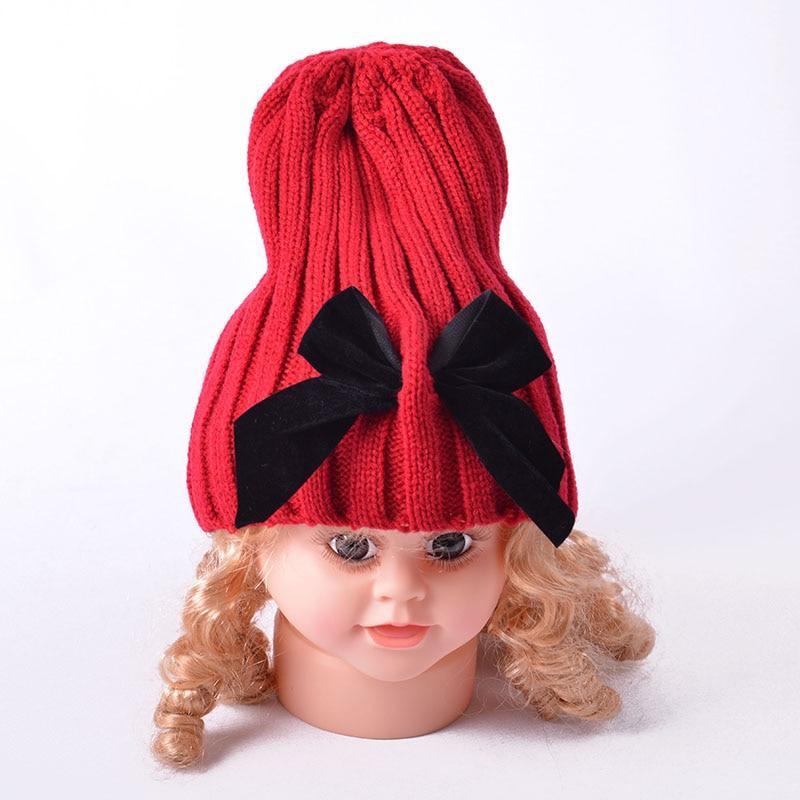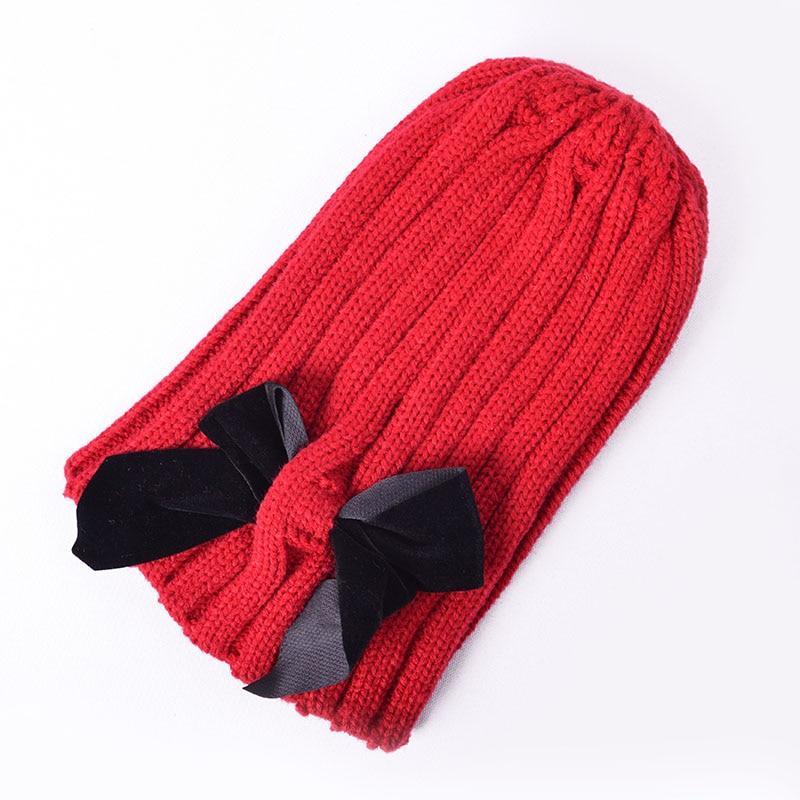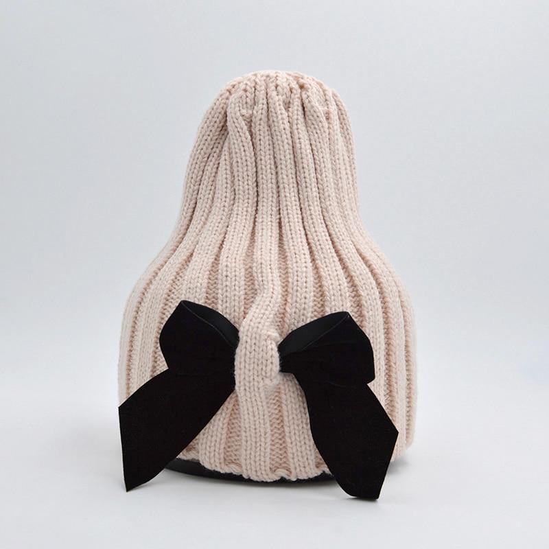 Modern Trend Big Bows Knitted Baby Girl Hat Cap Warm Kids baby winter Hat For Girls