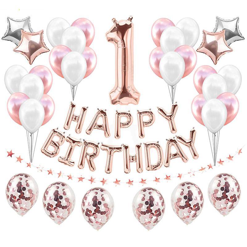 Birthday Balloons Foil Number Ballon Banner Party Decorations Rose Gold