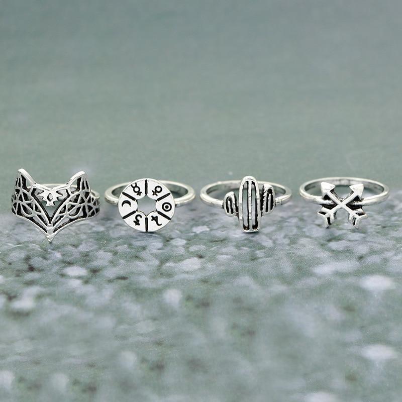 New Bohemia Antique Silver Color Elegant Rings For Women Arrow Elephant Fox Lion Pony Pattern Trendy Animal Jewelry