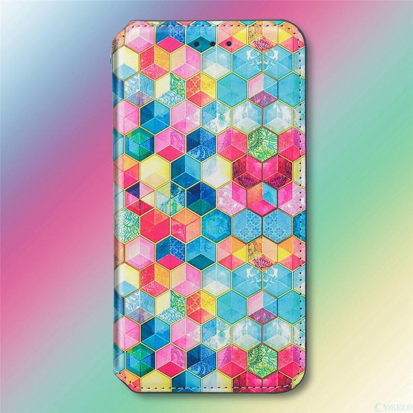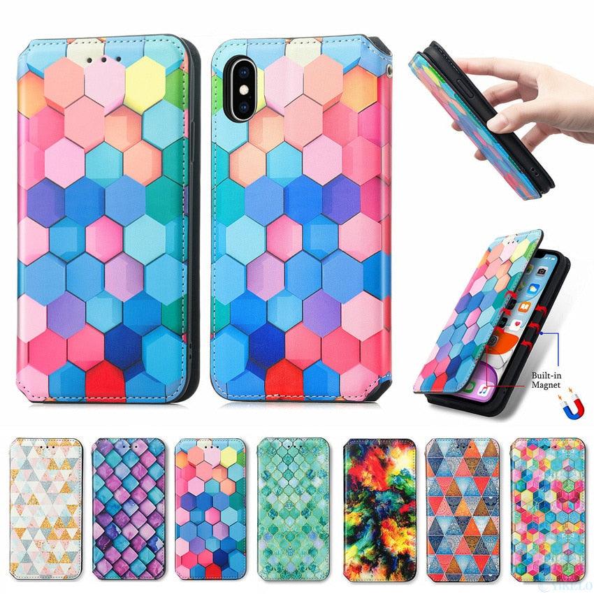 Multicolored Phone Case For iPhone 13 12 11 Pro Mini Cover Wallet Card Slot Flip Magnetic Leather PU Leather Flip Wallet Cover with Card Slots Case Cover