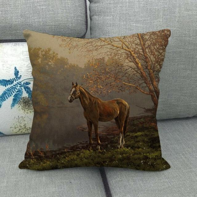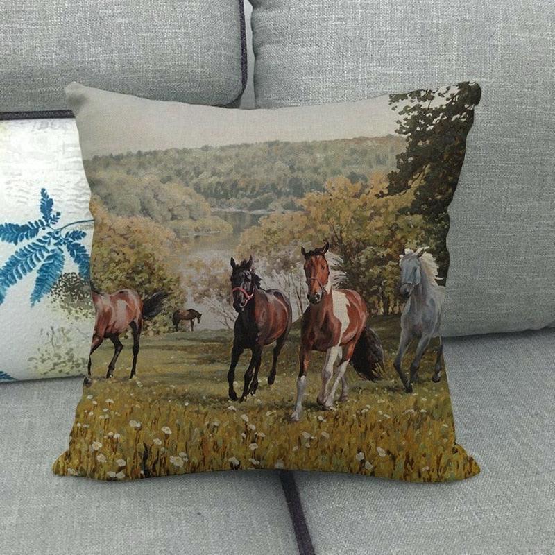 Elegant Grassland Floral Horse Pillow Covers Pastoral Animal Pattern Decorative Pillow Cases For Home Car Sofa Best Gift Linen / Cotton Square Pillow Cover Decorative Throw Pillowcase, Farmhouse Horse 45X45cm