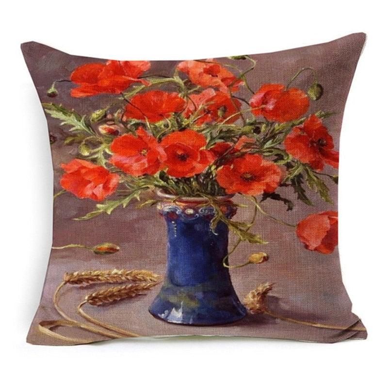 Elegant Oil Painting Flowers Printed Pillow Covers Vintage Style Birds Vase Art Home Decorative Sofa Car Chair Cushion Cover Decorative Throw Pillow Covers for Couch Sofa Bed Oil Painting Flower Farmhouse Cotton Linen Cusion Cover 45X45cm
