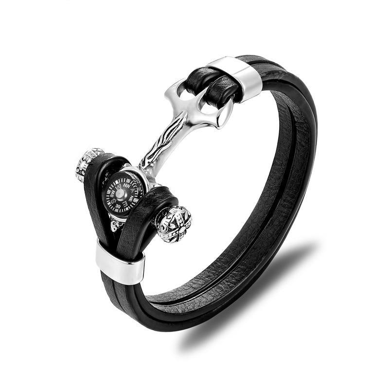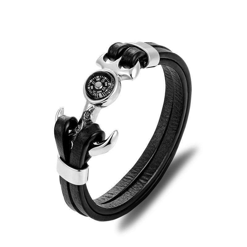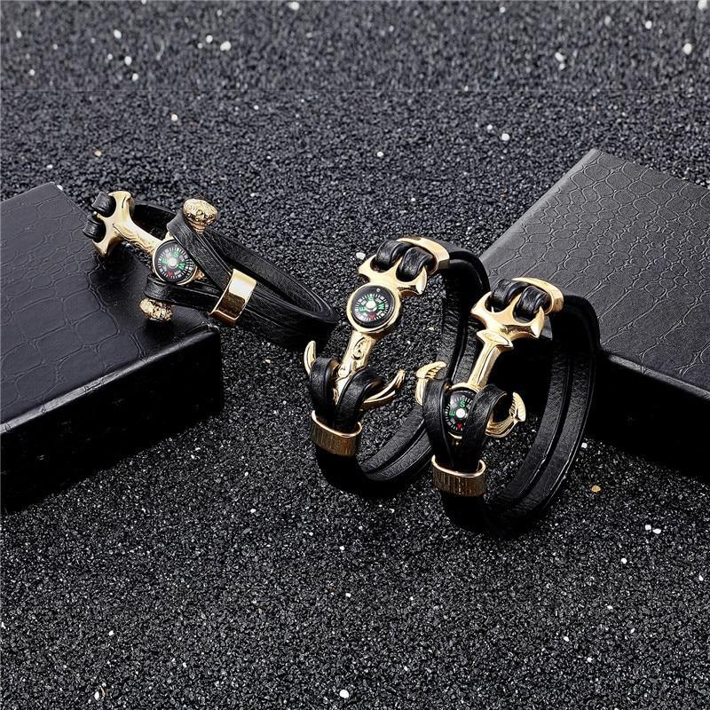 New Elegant Fashion Multi-Layer Leather Luxury Stainless Steel Charm Bracelet Skull Compass Anchor Couple Survival Bracelets Bangles Cool For Men And Women