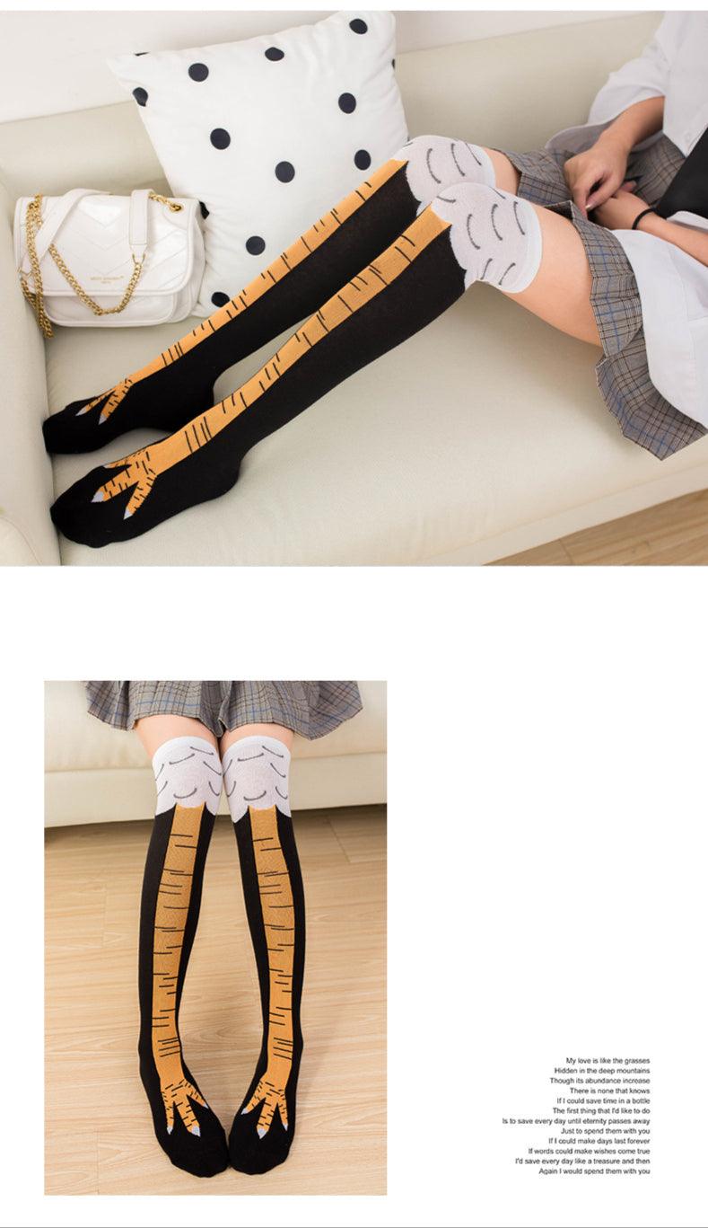 Funny Chicken Long Socks Fashion Cotton Funny 3D Unisex Over Knee High Socks Halloween Christmas Cartoon Gift Socks Fun Thigh Highs Chicken Legs Socks For Men And Women