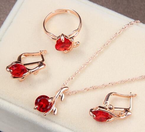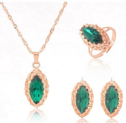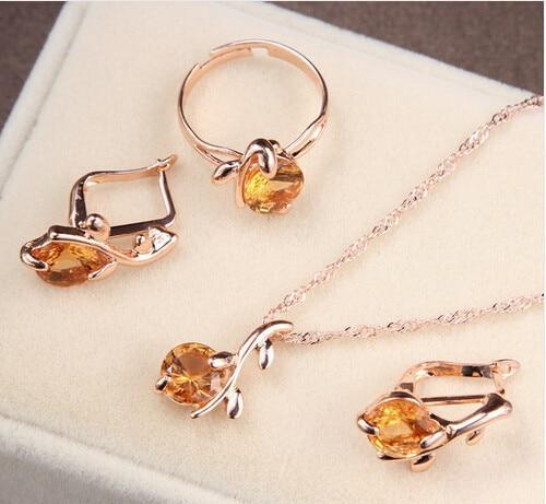 High Quality Elegant Gold Color Austrian Crystal Pendants Necklaces Earrings Bridal Jewelry Sets For Women