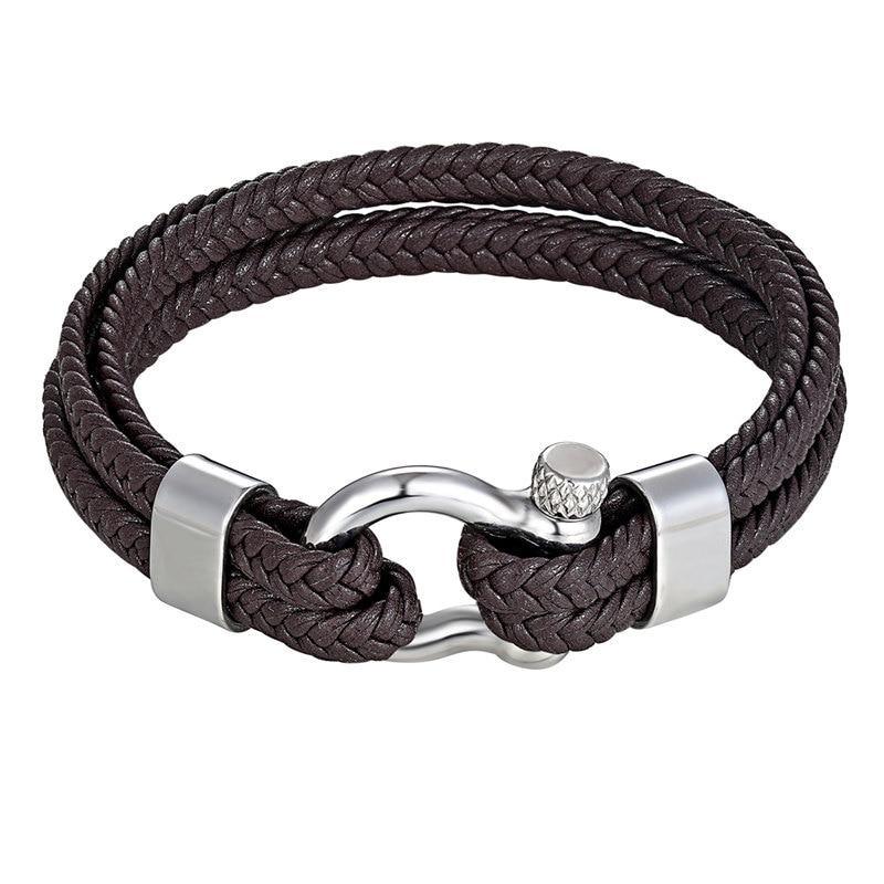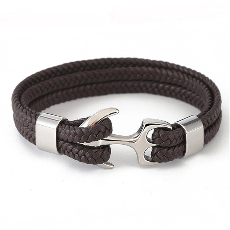 High Quality Stainless Steel Shackle Buckle Leather Survival Anchor Bracelets Bangle Men Surf Nautical Sailor Surfer Wristband Jewelry
