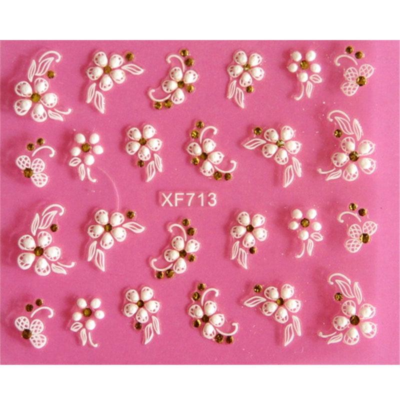 Lovely 3D flower design Water Transfer Nails Art Sticker Decals Girl Women Manicure Tools Nail Wraps Decals Decoration White Feather Lace Flower Leaf Carving Design Exquisite Pattern Nail Art Supplies Self-Adhesive Nail