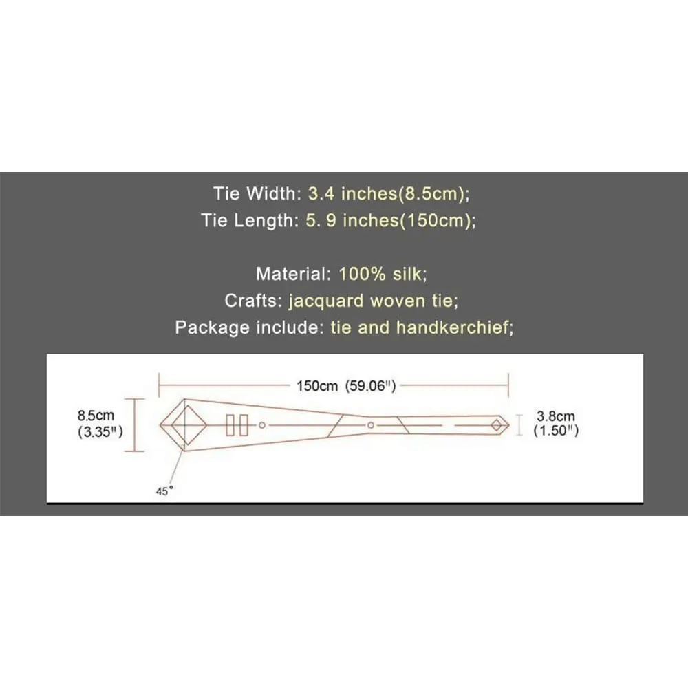 • MATERIAL AND CRAFT- Necktie and pocket square are made from Silk. 2000 stitches jacquard woven craft, high-density fabric makes the tie non-deformed and soft with a genuine look and feel.