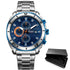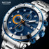 Luxury Men's Business Quartz Watches Blue Fashion Chronograph Elegant Stainless Steel Wristwatches For Man