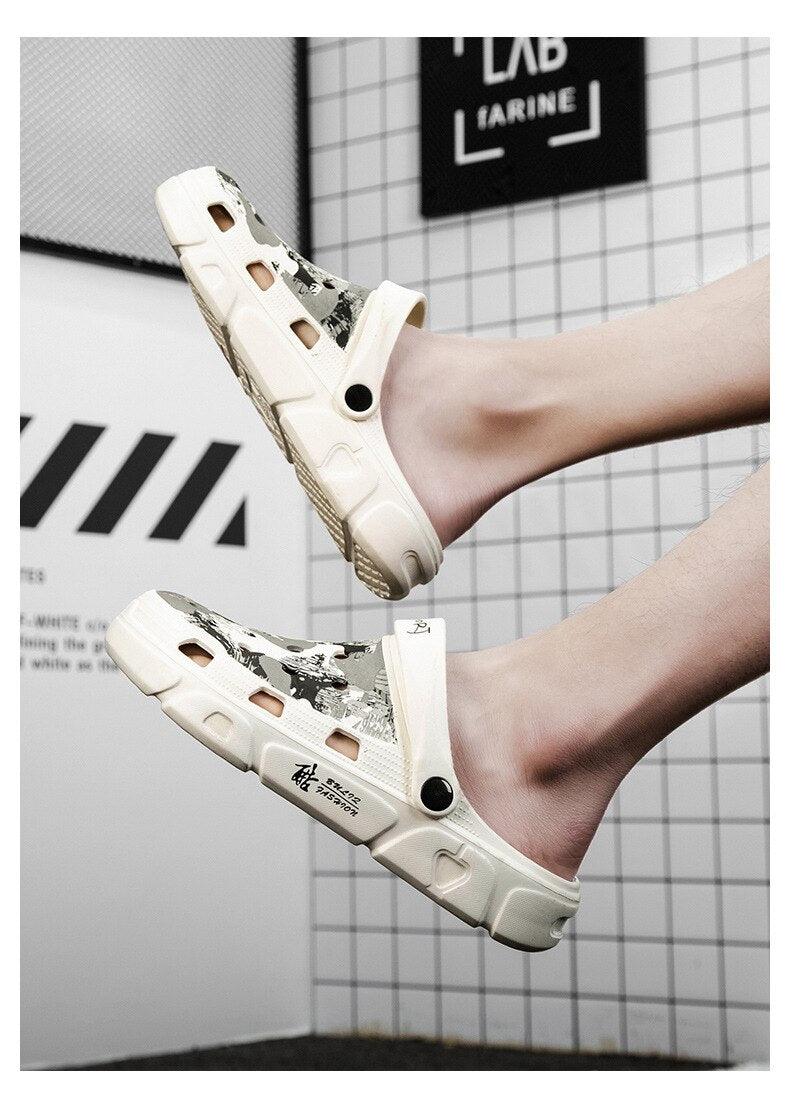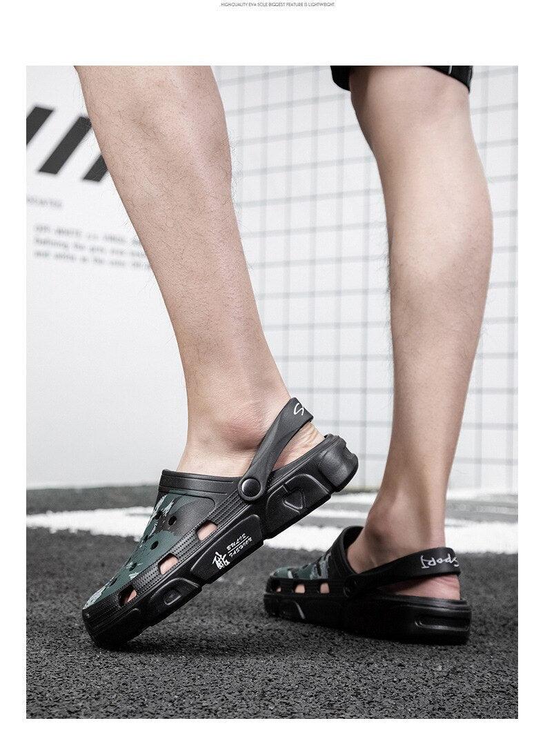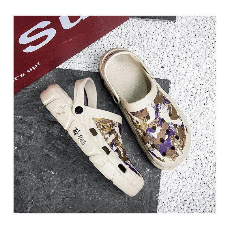 Men Sandals Summer Camouflage Hole Shoes Garden Shoes Outdoor Non-slip Beach Shoes Flat Sandals Home Slippers Unisex Garden Clogs Shoes Slippers Sandals For Mens