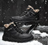 Mens Ankle Snow Boots Winter Fur Warm Leather Outdoor Walking Mountain Climbing Waterproof Snow Boots Outdoor Warm Non Slip Fur Lined Ankle Boots Leather Winter Shoes
