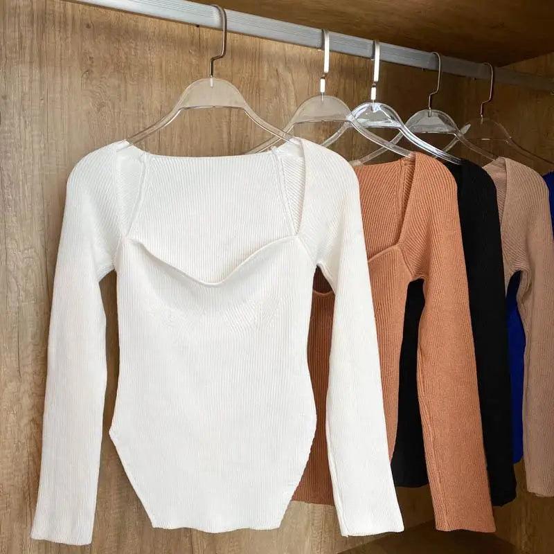 New Casual And Trendy Square Collar Long Sleeve Woman's Sweaters Knitted Pullover Spring Autumn Sweater Winter Tops For Women Black And White Jumper