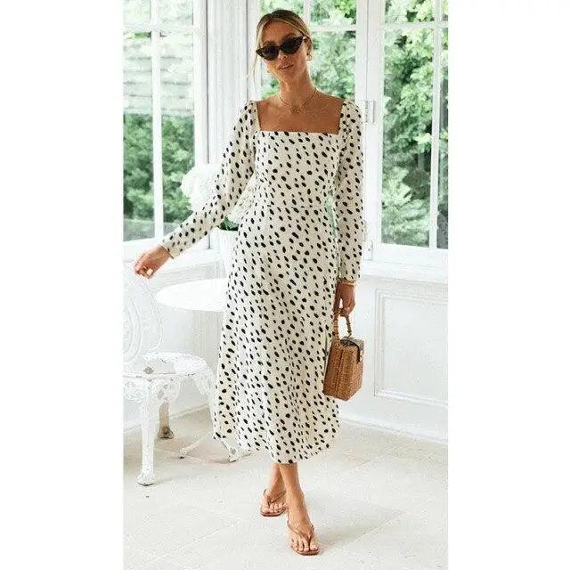 New Fashion Leopard Print Dot long sleeve Slit Luxury Dress - Summer Casual Party Wear Dresses For Women