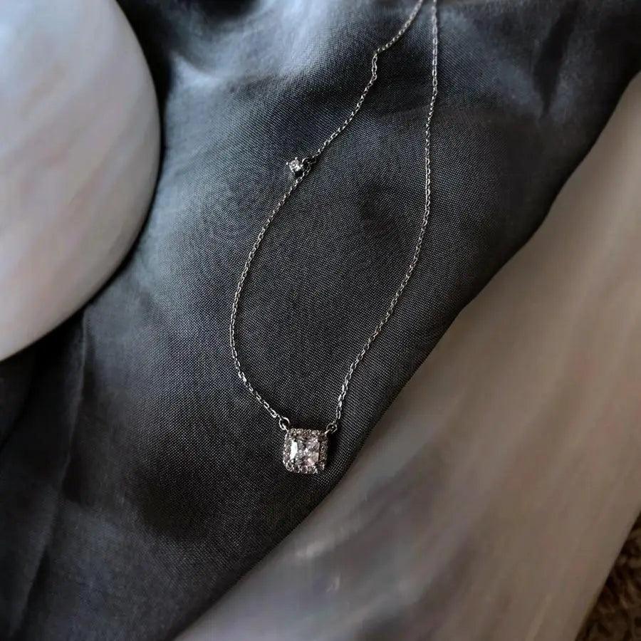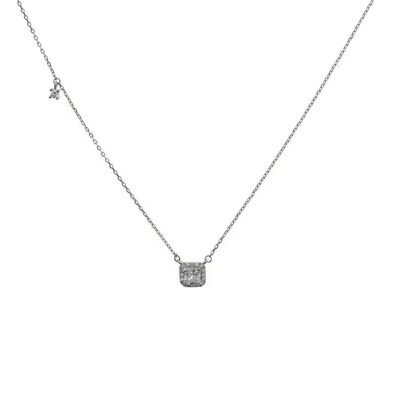 New Fashion Luxury 925 Sterling Silver Zircon Necklace Shining Square Necklace - Fashion Aesthetic Jewelry for women