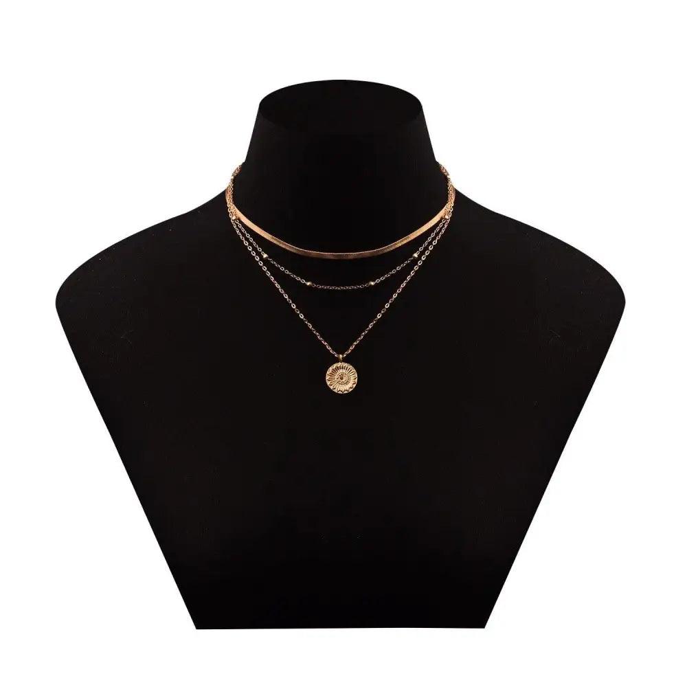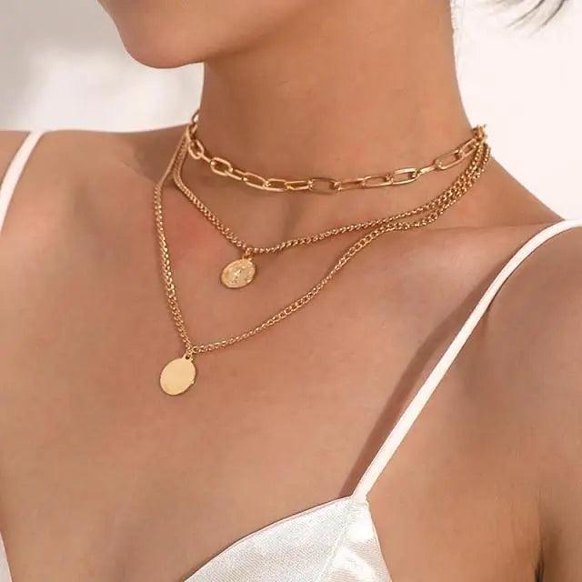• MULTILAYER NECKLACE- Intricately crafted gold tone chains with oval bead and coin pendant. Each necklace can be worn alone. Exquisite nacklace make a regal statement.