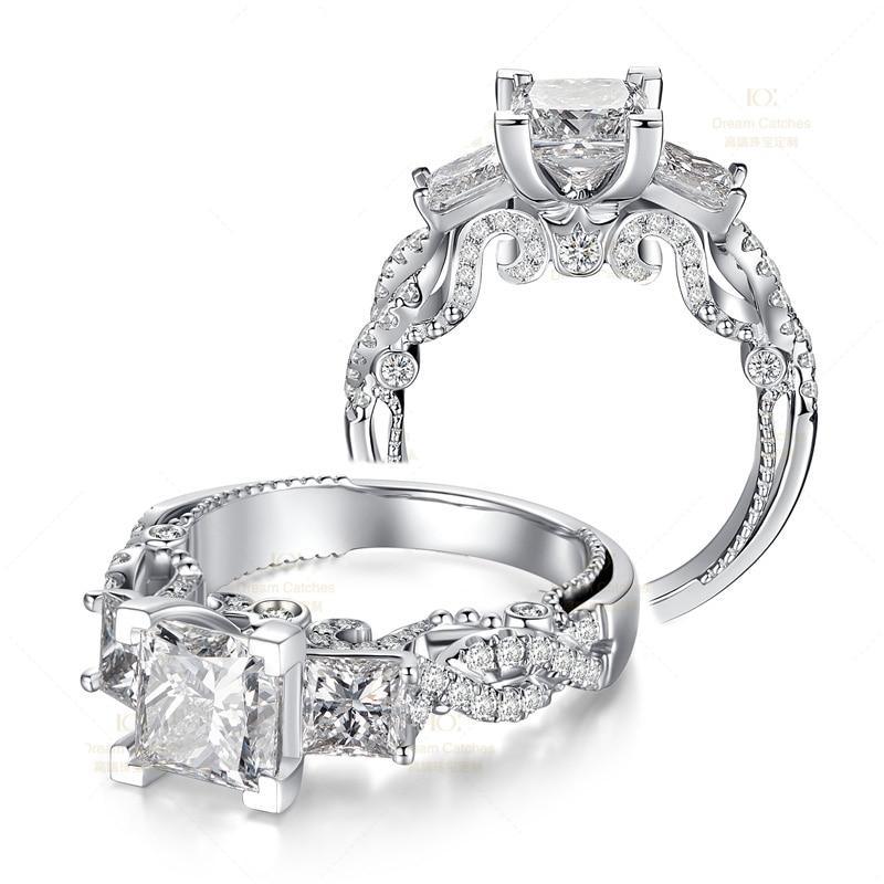 Luxury Modern Brilliant Diamond Square Three stone Diamond Ring Finger Brand Created Moissanite Wedding Rings for Women