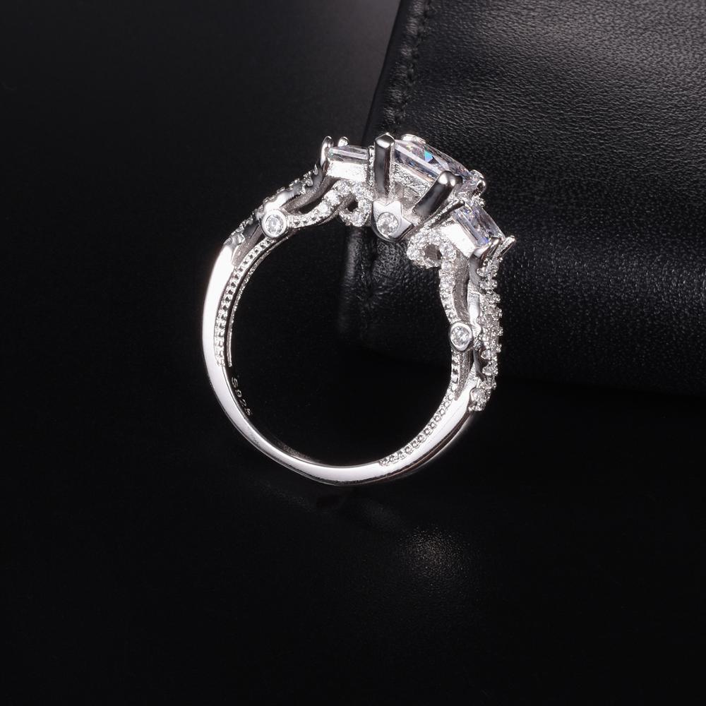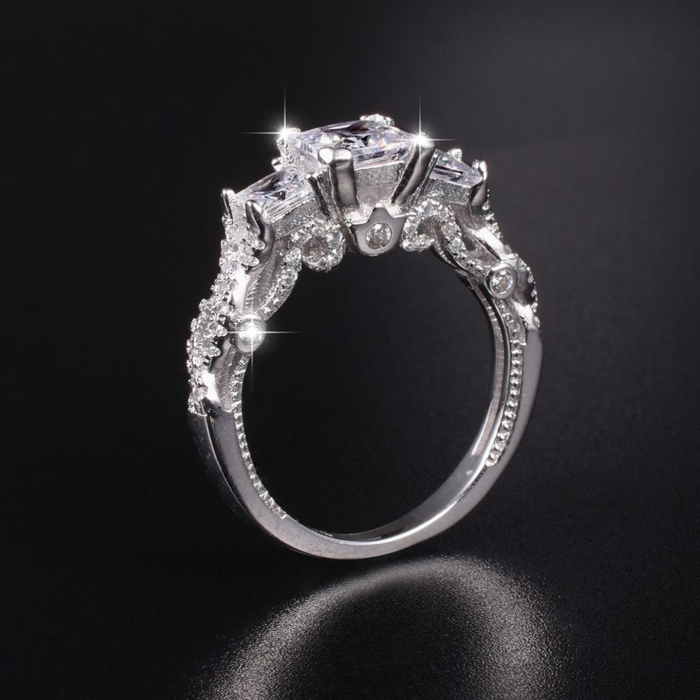 • OUR RECTANGULAR CUSHION CUT WAS DEVELOPED-Our rectangular cushion cut was developed uniquely to maximize and balance the features of brilliance, dispersion, and scintillation, making it shiny, full of fire and sparkles to look like realistic real diamonds. The main simulated diamomd in this ring is a 7x8mm, 2 carats cushion cut. Crafted with solid 925 silver and plated with platinum. Will not turn your fingers green.