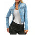 Unique Design Women's Denim Cropped Jacket Female Pockets Hole Short Jean Jackets Ladies Fashionable Button Casual Solid Coats