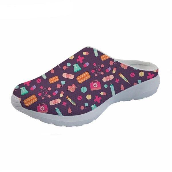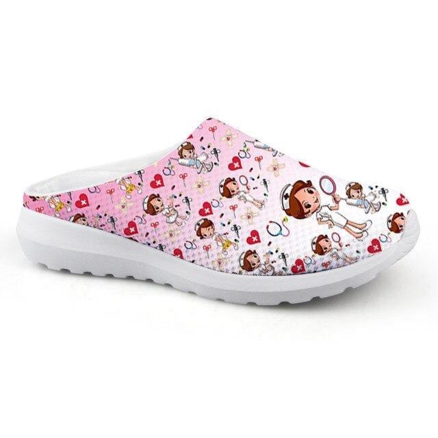 Women Beach Home Slippers Fashion Nurse Shoes Medical Doctor Sandals Summer Mesh Flats Sandals Lightweight Garden Clogs Quick-Drying Non-Slip Nurse Shoes For Women Home House Waterproof Slippers