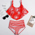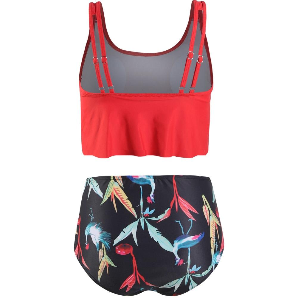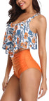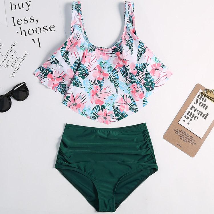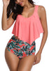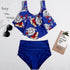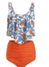 Women High Waist Bikini Plus Size Swimwear Summer Swimsuit Beach Bathing Suit Ruffle Bikini Floral Printed Ruffle High Waist Bikini Set Women's Tummy Control Bathing Suit Swimsuit Flounce Peplum