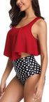 • UNIQUE DESIGN- This ruffle bikini set features an irregular flounce falbala top, racerback double-adjustable shoulder straps, polka dot/printed pattern, retro Boho high waist bottom.