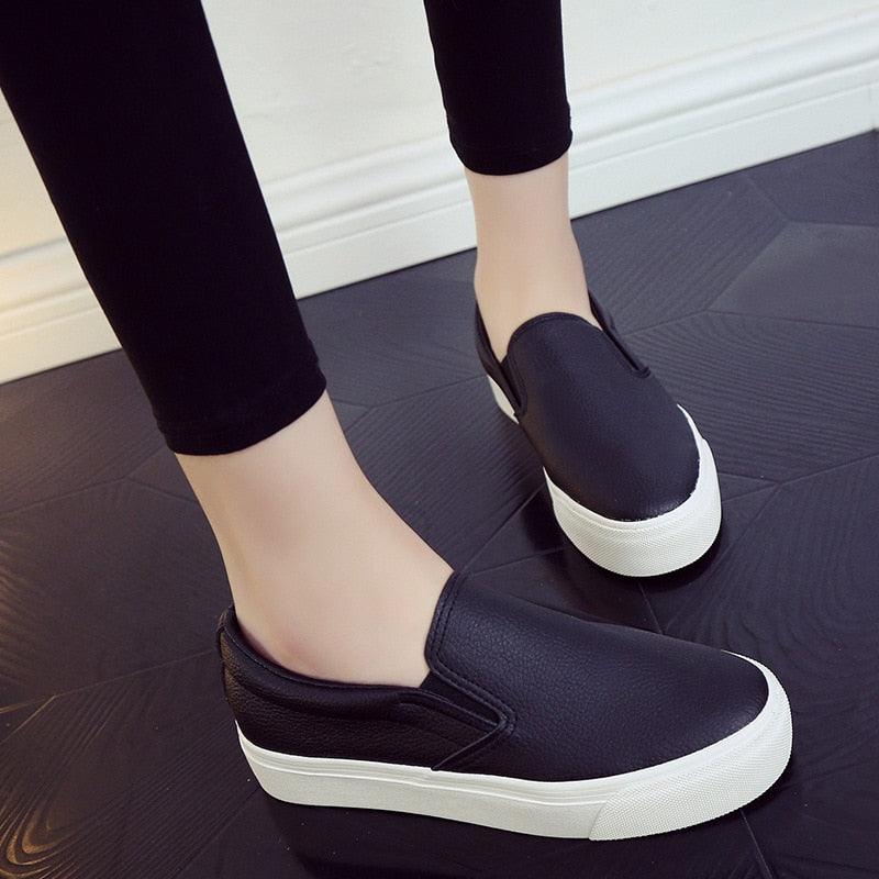 Women Leather Espadrilles Spring Trend Casual Flats Sneakers New Fashion Comfort Slip-on Platform Vulcanized Shoes Women Casual Fashionable Sports Espadrilles