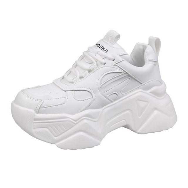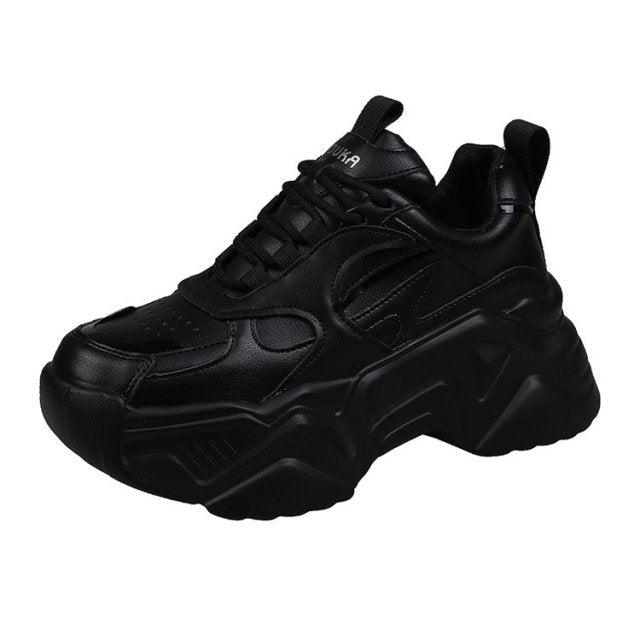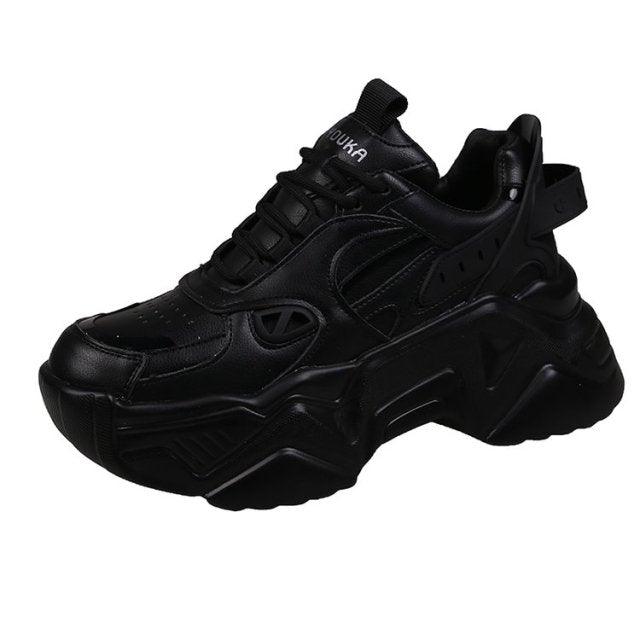 Women Platform Sneakers Leather Casual Ladies Chunky Shoes Woman High Black Fashion Thick Soled Sports Walking Shoes Lace Up Platform Leather Trainers Sneakers