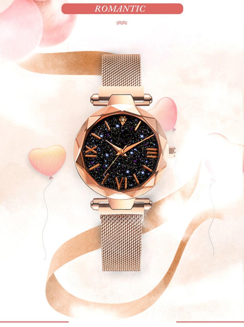 • SIMPLE AND ELEGANT: The watch as a whole is the most popular rose gold color. The dial is composed of black night sky and stars, which has a unique sense of fashion and extraordinary temperament.