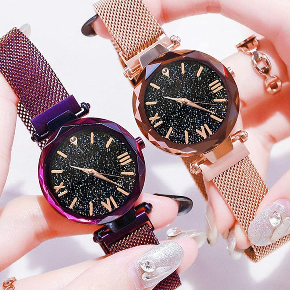 • UNIQUE DESIGN: Unlike traditional watches, this fashionable watch uses a magnet-attached buckle, which can be easily removed anytime and anywhere. The extremely strong suction will not fall off even under strenuous exercise. The dial is composed of dark night stars, simple yet elegant.