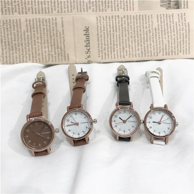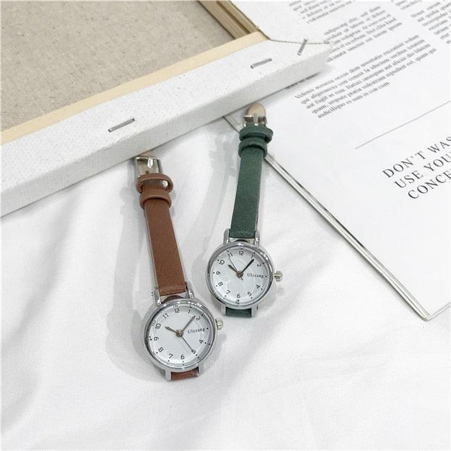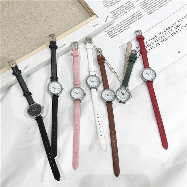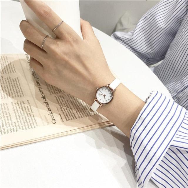 Womens Fashion White Small Watches Quartz Wristwatch Simple Leather Band Fashion Simple Ladies Quartz Watches Mini Ultra-Thin Analog Watches For Girls Students