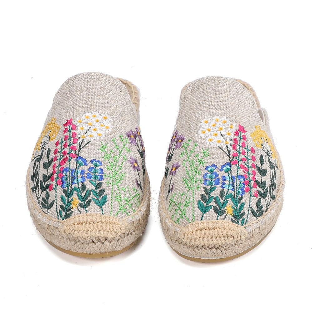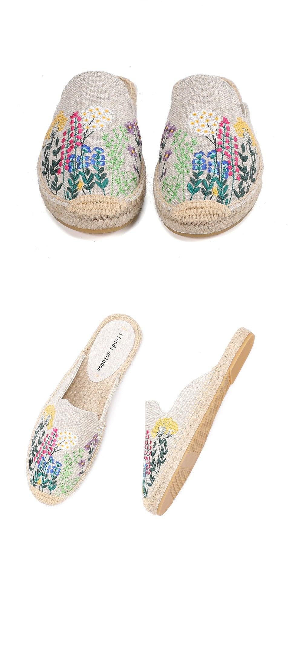 Womens Flip Flops Slippers Real Hemp Summer Rubber Floral Slides Woman Shoes Comfy House Shoes Indoor Outdoor Cozy Womens Slipper Hard Sole Orthopedic Hemp Linen Slides Slippers
