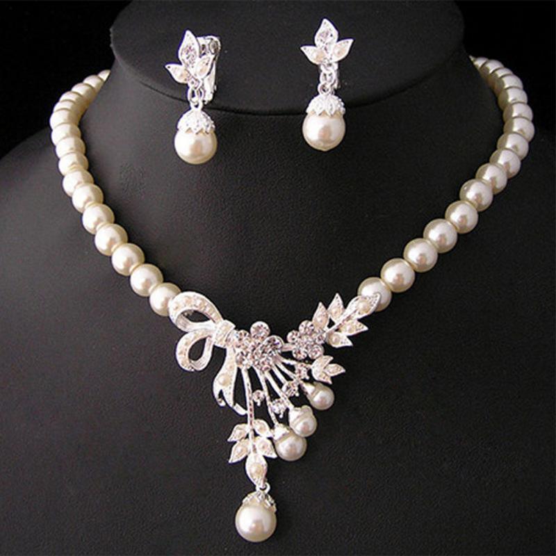 Elegant Lady Luxury Pearl Jewelry Sets For Women Excelent for  Wedding Bridal Crystal Necklace Earrings Set