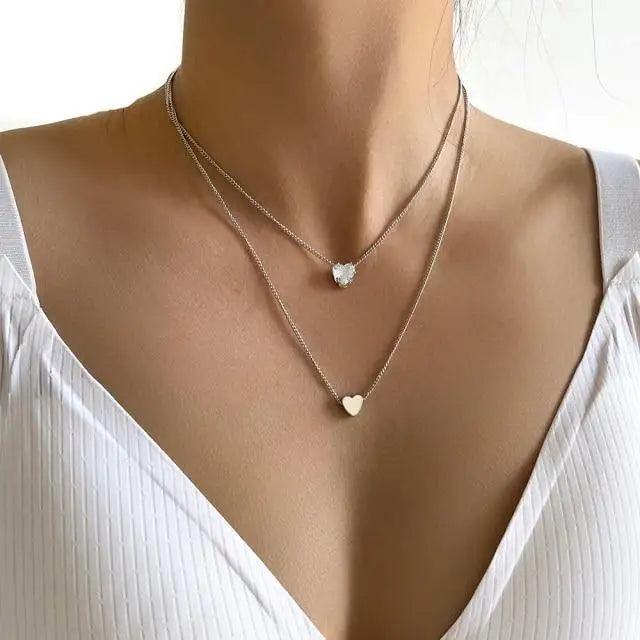 New Shining Zircon 14k Gold Double layer Heart Necklace For Women And Girls Elegant Clavicle Chain Wedding Pendant