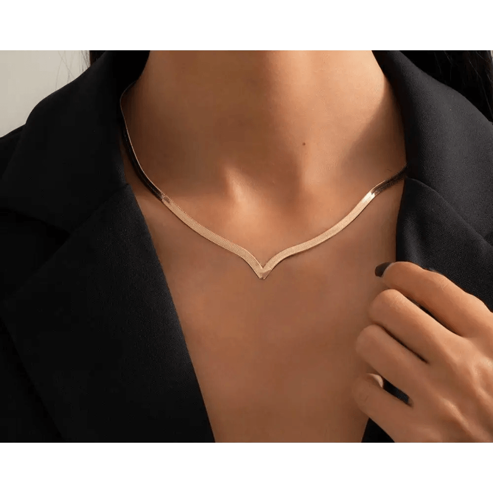 Sizzling Copper Flat Snake Chain Choker Necklace For Women and Girls V-Shaped Short Collar Necklace Women Jewelry