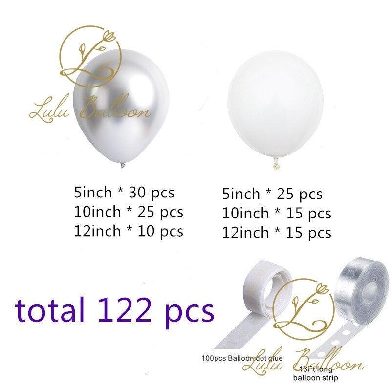 122 pieces White Silver Latex Balloon Arch Garland Kit For Baby Shower Wedding Birthday Graduation Anniversary Bachelorette Party Luxury Ballons