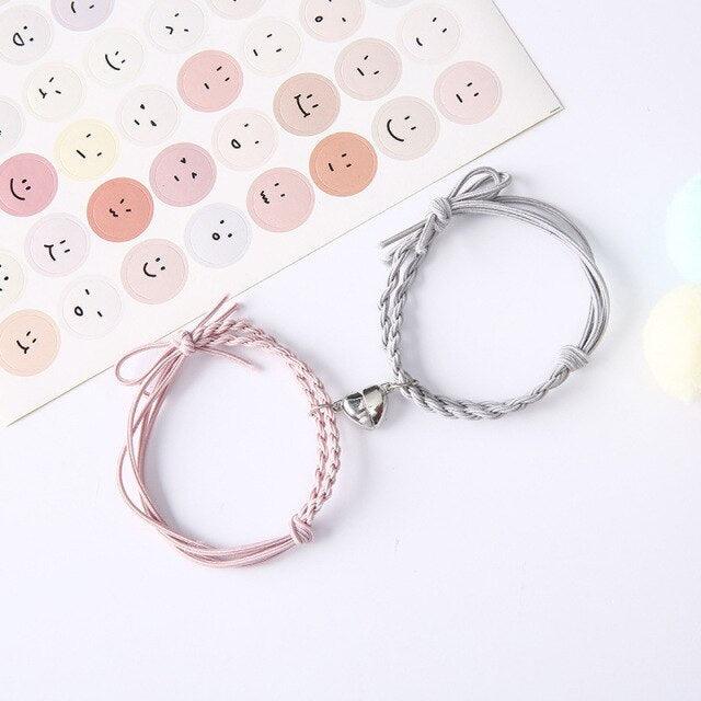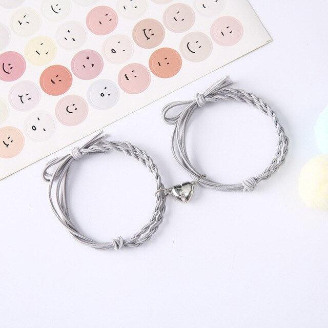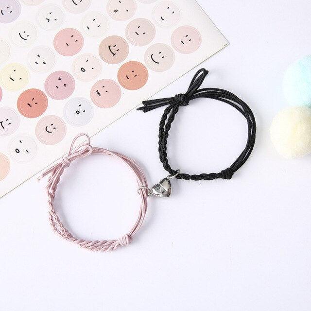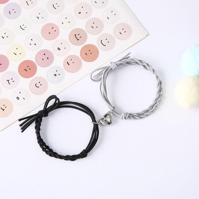 2PCS Magnetic Bracelet Stainless Steel Love Heart Charm Couple Bracelets For Friend Braid Rope Bracelets Magnet Adjustable Rope Matching Bracelet Love Bracelet Couples 2 Pieces Relationship Magnetic Bracelet