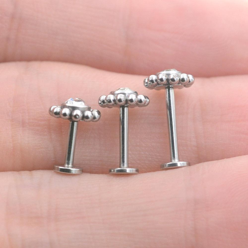 • UNIQUE DESIGN: High Polished Smooth Surface and Hypoallergenic Metal Prevents Skin Damage and Makes Healing Process Comfortable and Painless. Tragus, Cartilage, and Labret Earring Studs in Different Size Barbells with Internally Threaded CZ Screw Top.