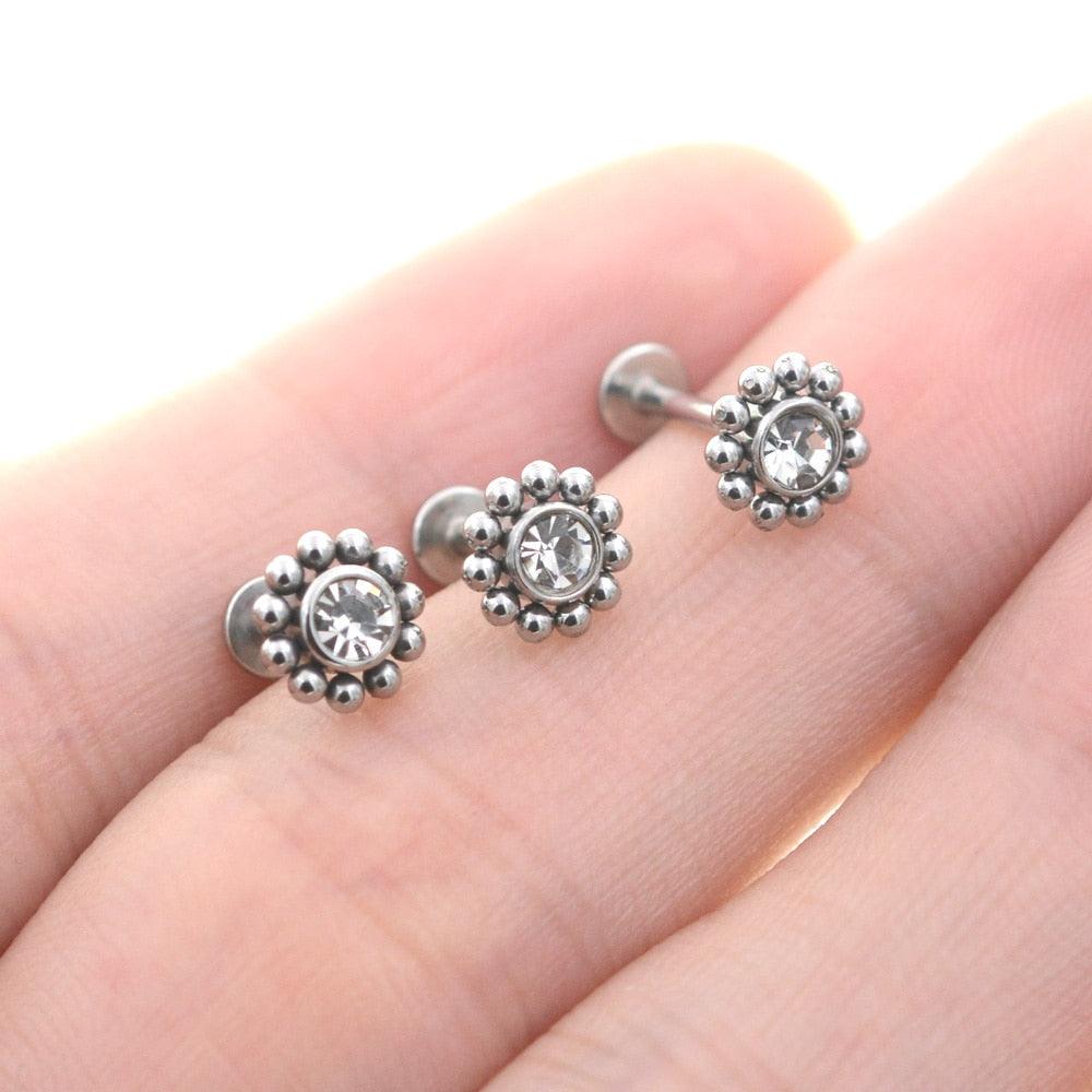 • FEATURES: Cute Small Piercing Earring Studs, Flat Backs, Can Be Used For Ear Cartilage Piercing, Tragus Studs, Helix Studs, Lip Piercing/Monroe Lip Ring, Nose Studs Ring, Triple Forward Upper Helix Earrings.