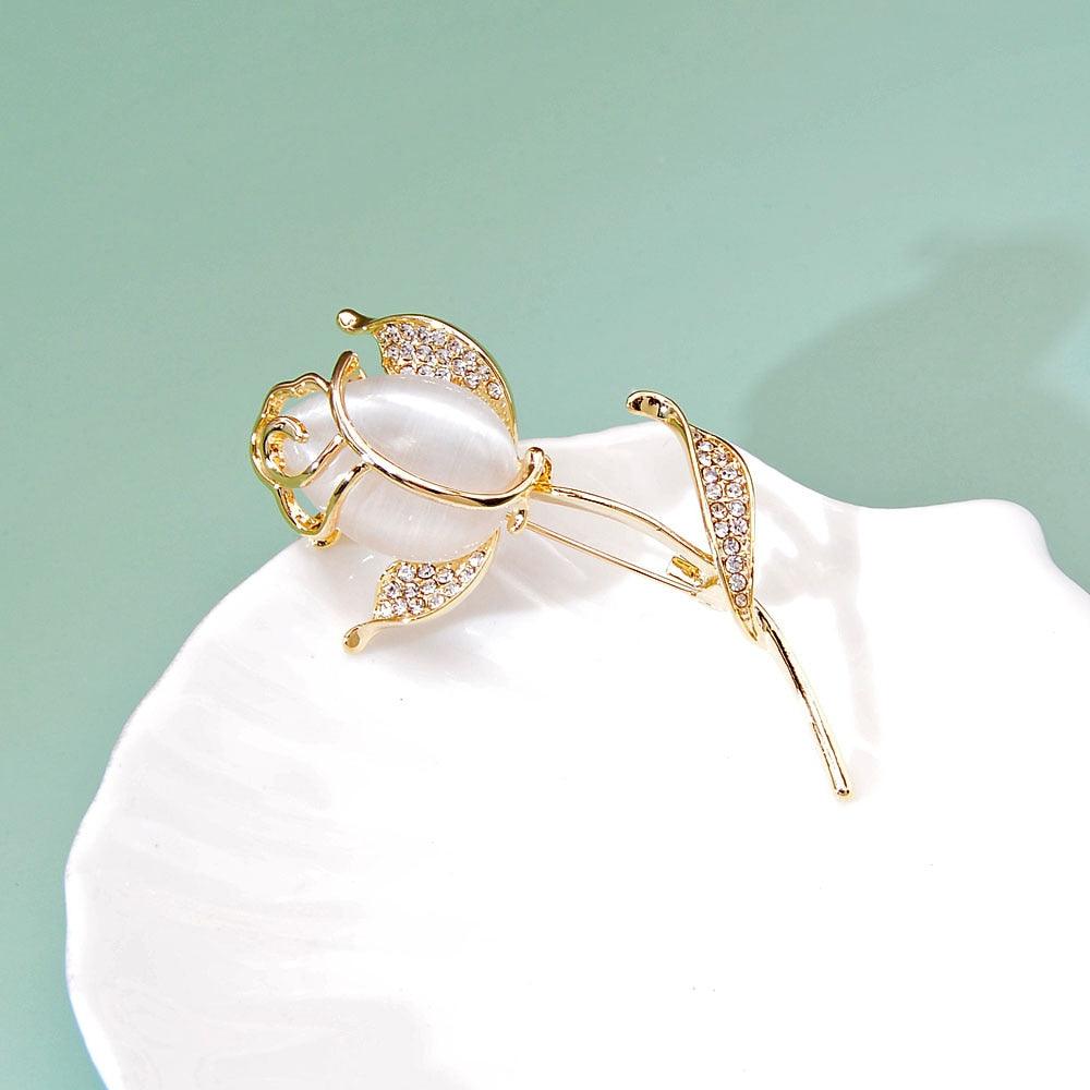Beautiful Rose Flower Brooches For Women Fashion Pin Elegant Rhinestone Brooch Charming Jewelry Quality Shining Rose Brooches Women Small Flower Party Office Brooch Pins