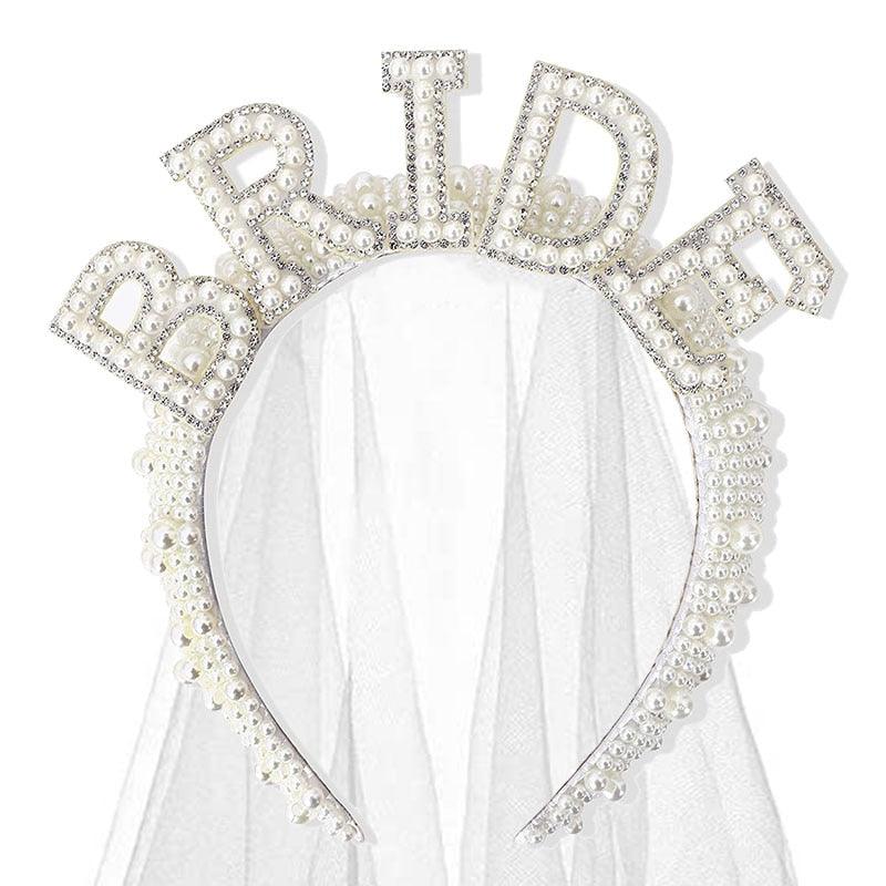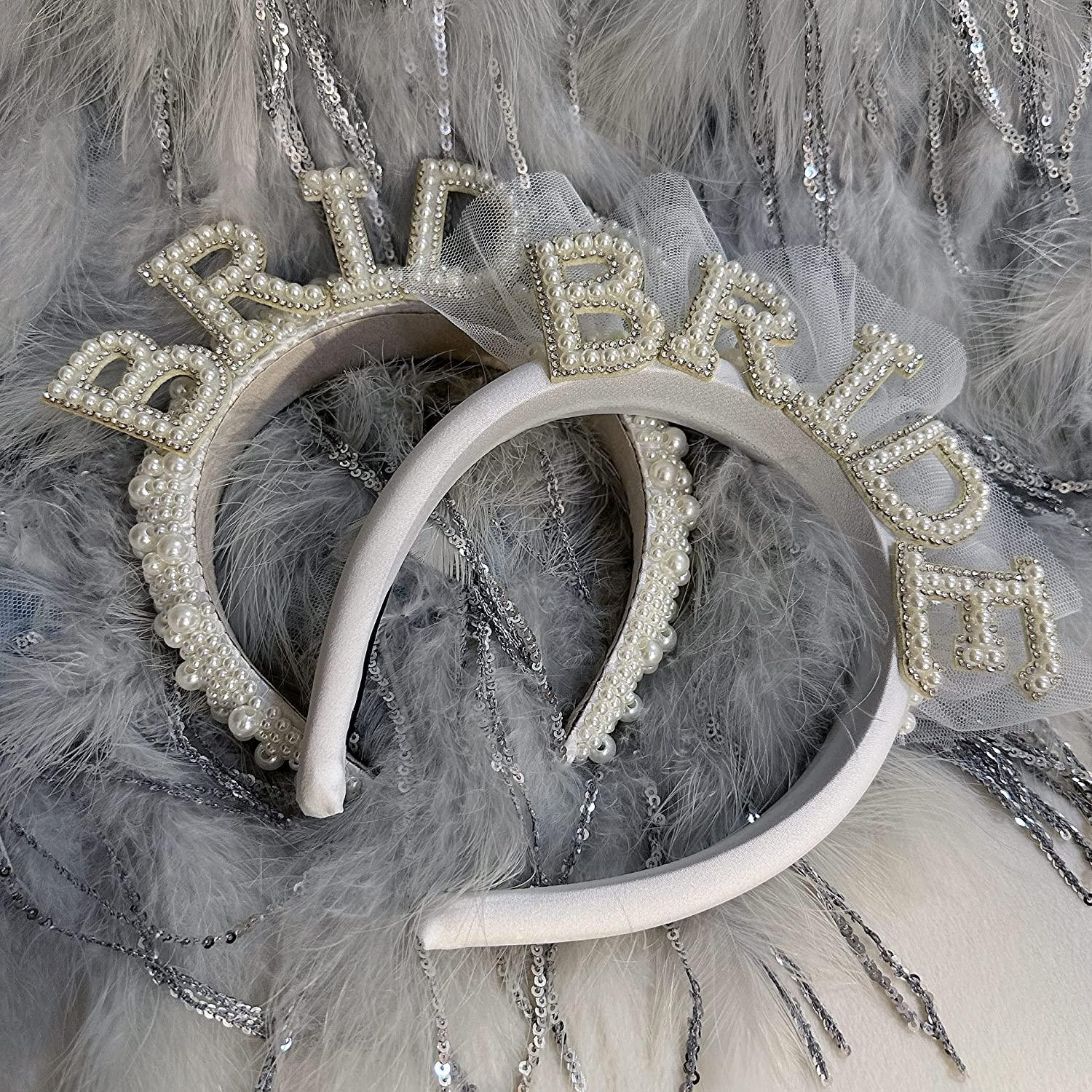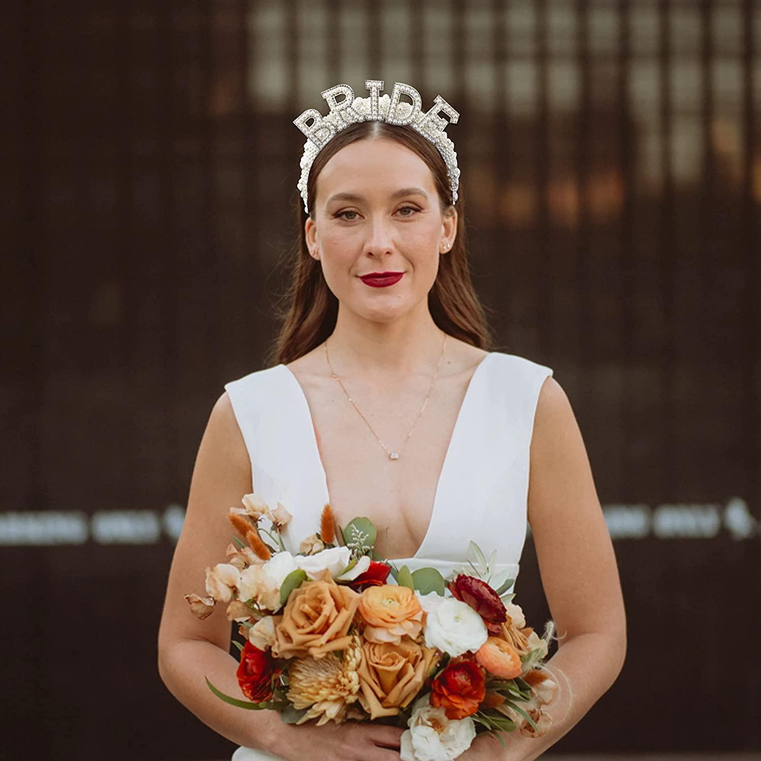 Bride to be Pearl Crown Wedding Headband Party Bridal Shower Wedding Engagement Rehearsal Dinner Decoration Gift Rhinestone Bridesmaid Headband Bridal Shower Bachelorette Party Headbands