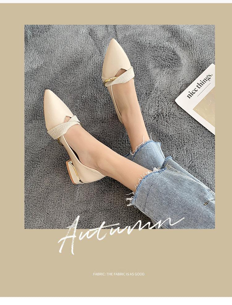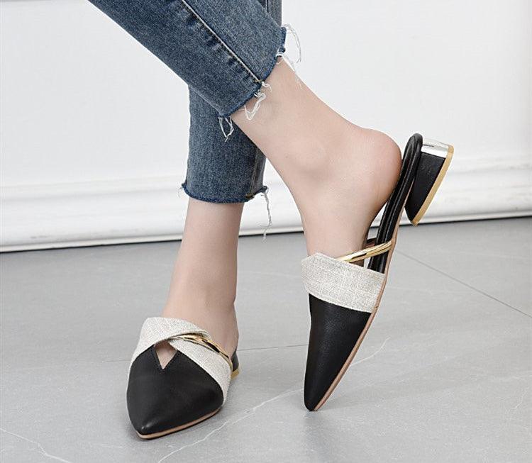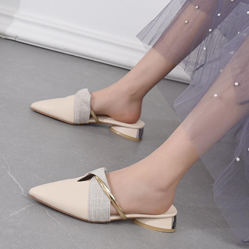 Elegant Low Heel Women Summer Pointed-Toe Slippers Slip On Office Shoes Luxury Women Slip On Comfortable Pointed Toe Womens Loafers Backless Low Heel Slide Slippers