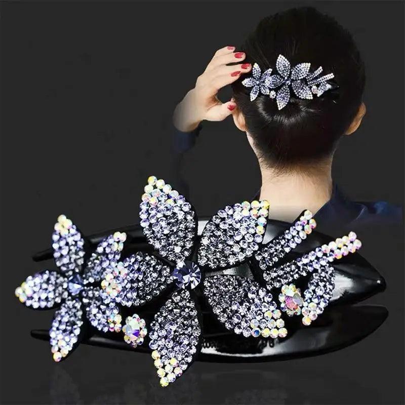 • DURABLE MATERIAL- these rhinestone double flower hair clips are made of artificial rhinestone, faux crystal and quality plastic which is beautiful and durable, not easy to break, shining crystals and elegant pearls make these clips exquisite and chic