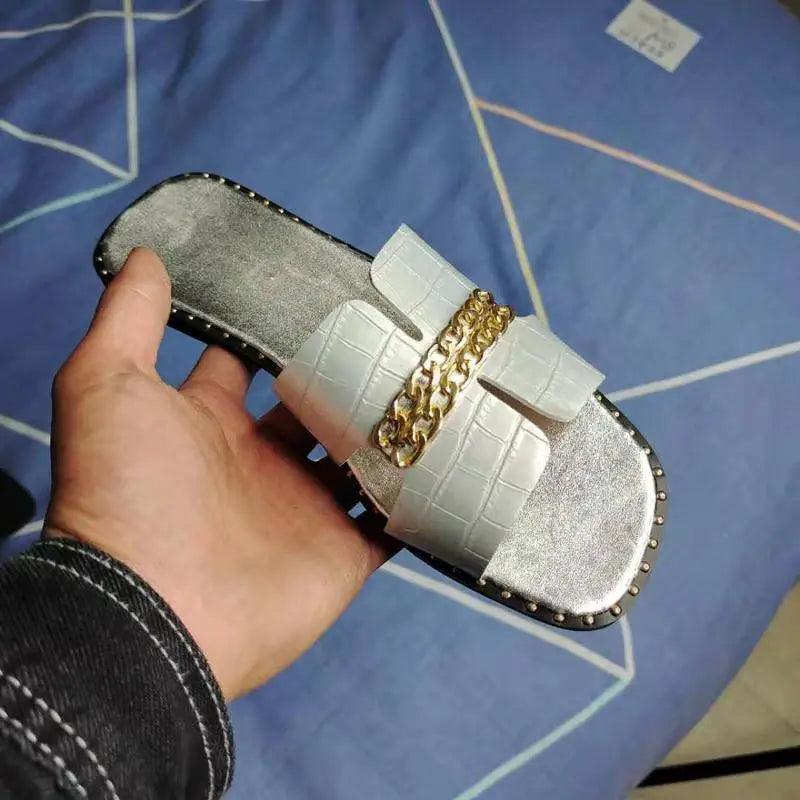 Elegant Black Women Chain Flip Flops Luxury Design Sandal Women Outdoor Slippers Casual Style Sandals
